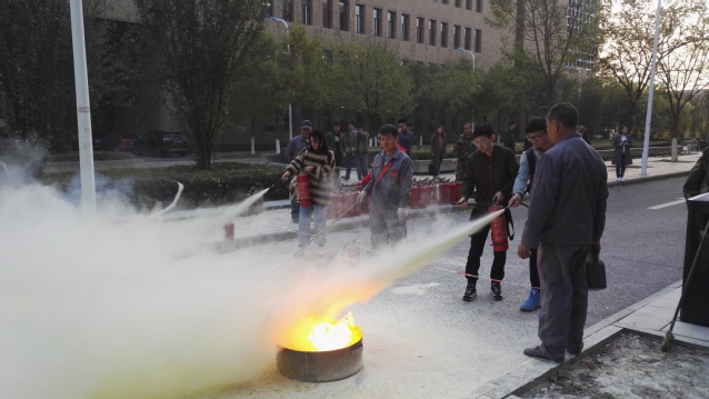 随后,即将进入实验室的大四学生以及研一学生在材料学院楼内进行了火灾逃生演练。同学们在听到火灾警报后,迅速穿过演习烟雾撤离学院楼,有序疏散到了楼外的安全地带。逃生演练结束后,同学以及新入职教师又进行了灭火器实战演练,保卫处负责人细致地讲解了干粉灭火器的使用方法及适用对象,并组织老师和学生们按照消防指挥员的指令和要求操作灭火器灭火。过程中老师和学生们都练习了干粉灭火器的使用,提高了扑灭初期火情的灭火器操作能力。