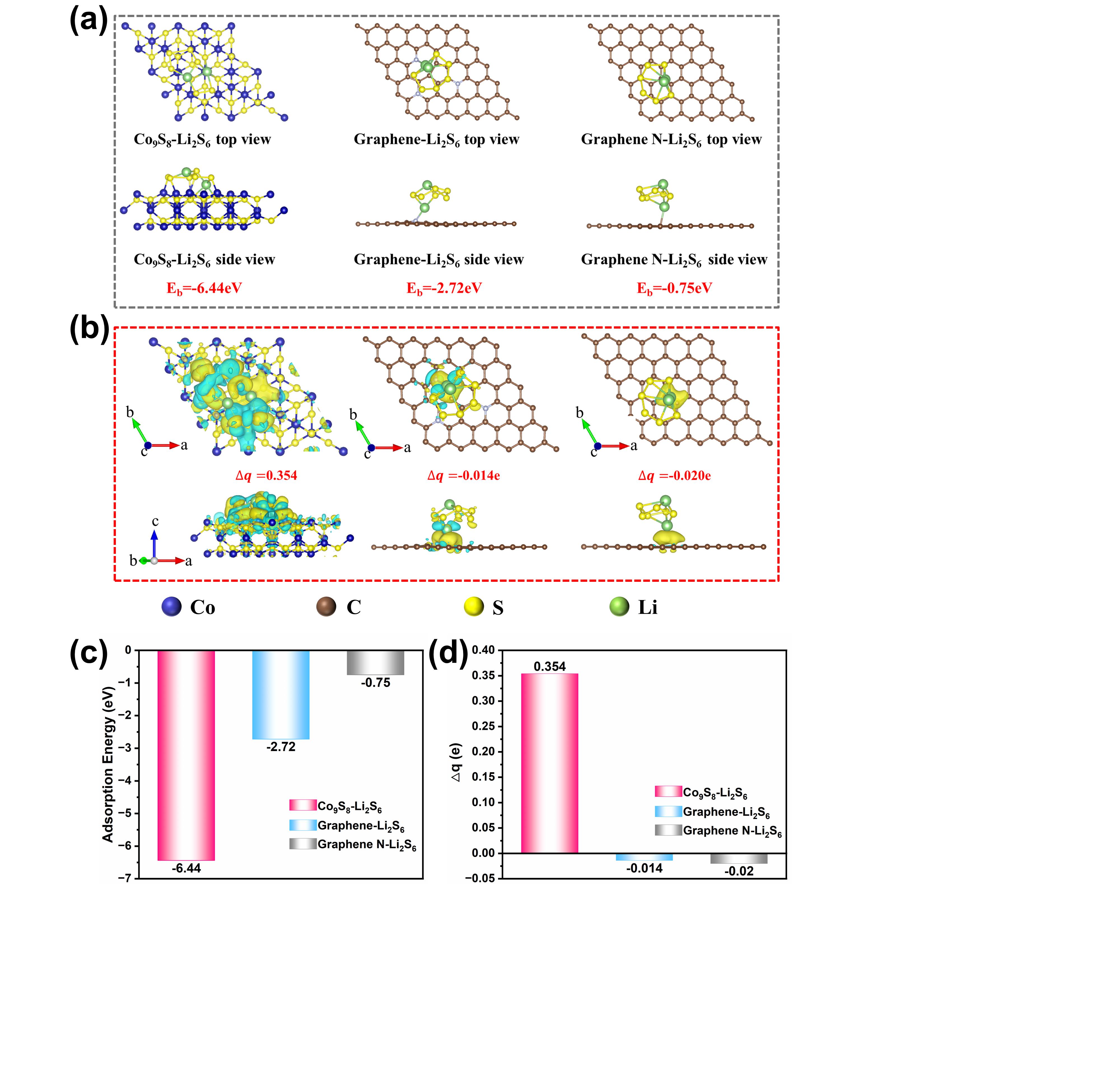 图4 理论计算证实Co9S8/石墨烯耦合催化多硫化物吸附与转化