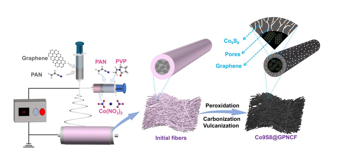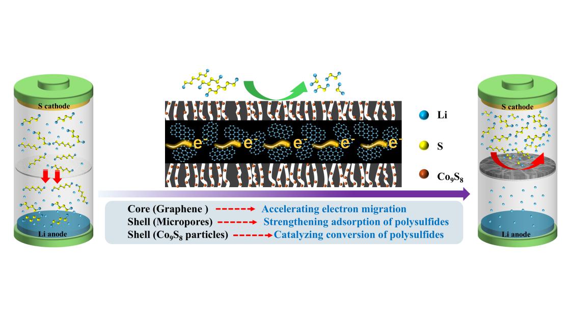 锂硫电池作为新一代高能量密度储能器件的代表具有良好的开发前景。然而,多硫化物的穿梭效应成为制约其发展的巨大障碍。加速多硫化物还原转化是抑制穿梭效应的关键。设计具有高催化活性的中间隔层是抑制穿梭效应的重要策略之一。将高活性金属硫化物,如Co9S8,与碳材料有机结合是实现高性能中间隔层的重要途径。但是,如何兼顾活性纳米粒子高负载和碳基体高表面积/高电导率是目前此类中间隔层研发面临的重要挑战。